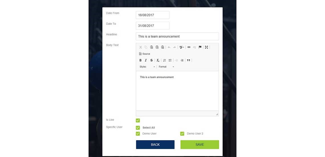 Please bear in mind that a last-minute announcement may not get seen until it is too late, especially if you add it during the shift. We are looking at adding pop-up notifications and these will be coming in the future.