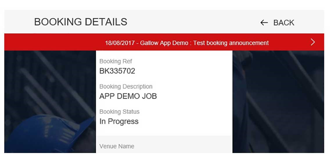 The announcement appears on the Booking Details screen. This allows you to share info relevant to each individual booking. Clicking on the announcement takes you to the message detail.