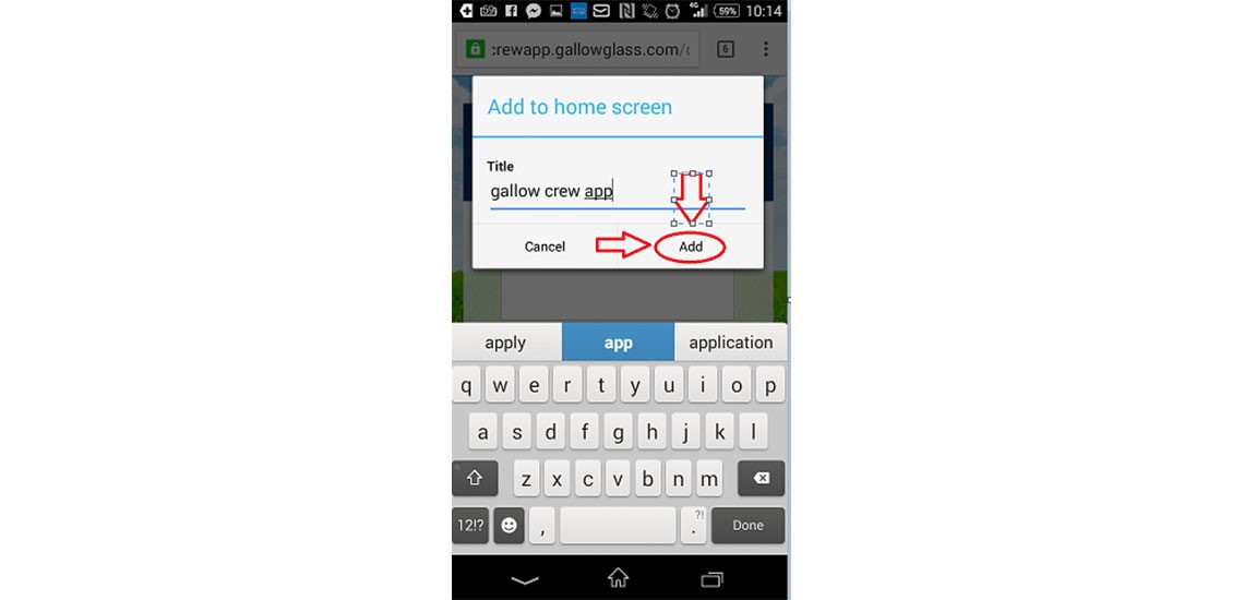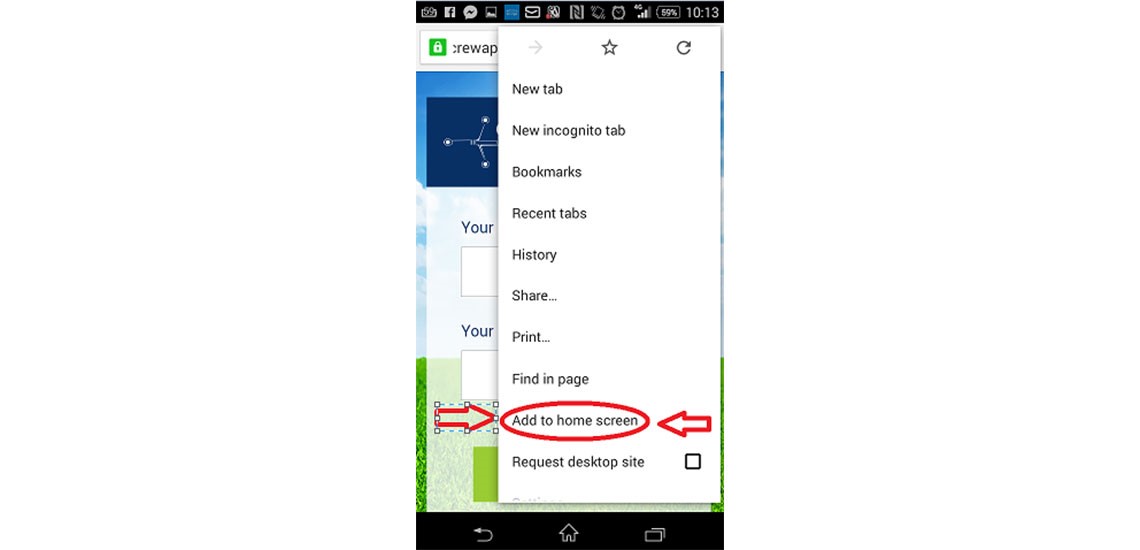 Press the Add to home screen option