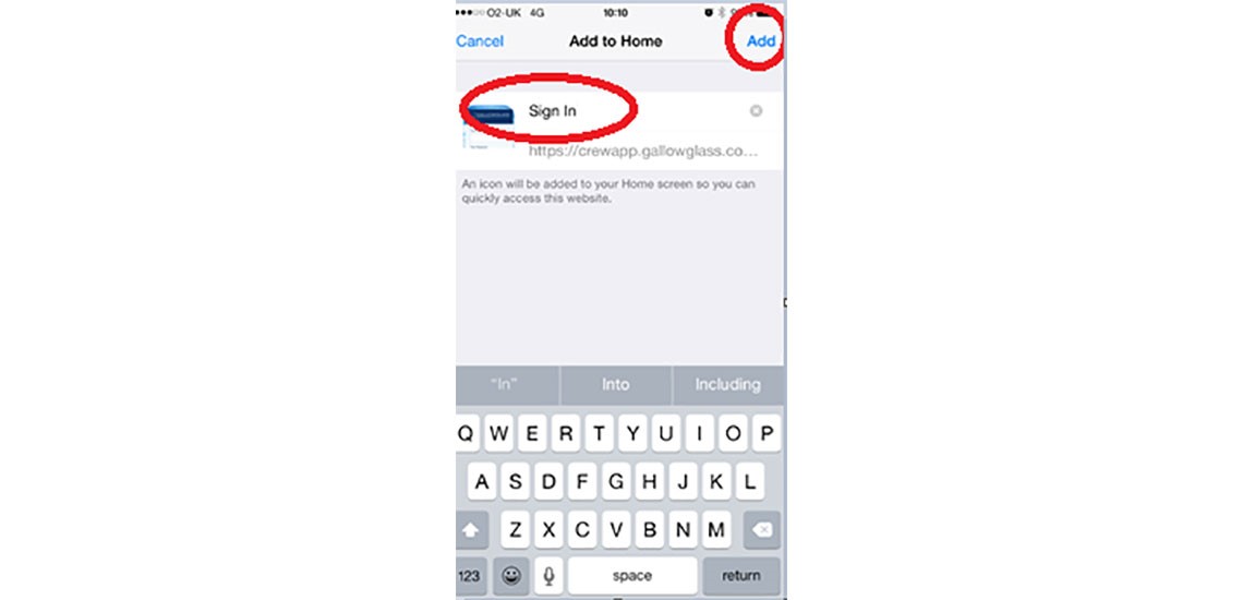 Then type something like Gallow Client App where it says Sign In if you want to and then press Add (top right) and the app will be pinned to your home page.