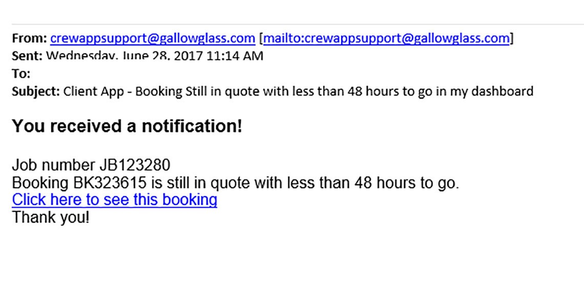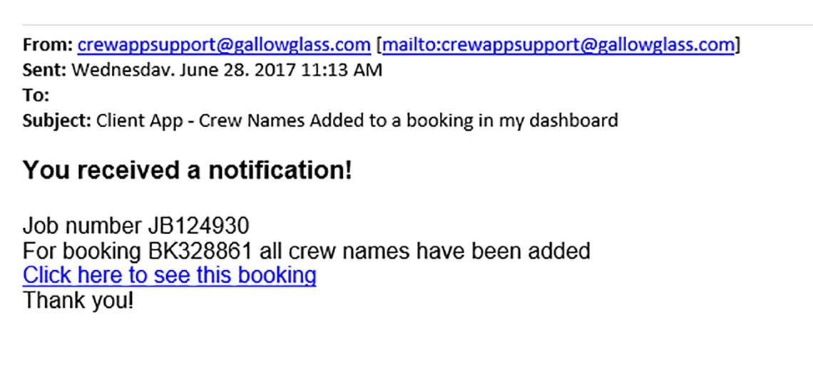 We understand how busy you are and sometimes it is easy to forget to confirm a booking once you have asked for a quote. Unless the booking is confirmed, the crew won't be coming. We also need time to make sure we can assign you the crew you require. If you enable this notification, you will get a reminder email a couple of days before the event giving you time to confirm with us that the booking is going ahead.